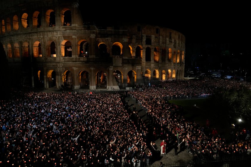 Папа Лъв XIV отбеляза първия Разпети петък от своя понтификат, като ръководи традиционната процесия в прочутия римски Колизеум.