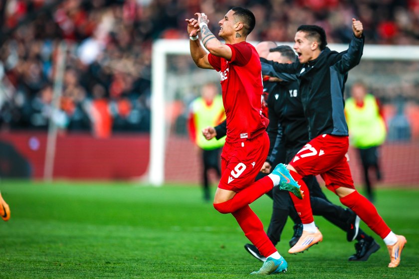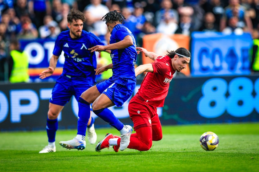 Късен гол спаси кожата на "червените" и не позволи на "сините" да дръпнат още по-сериозно на върха в Първа лига.