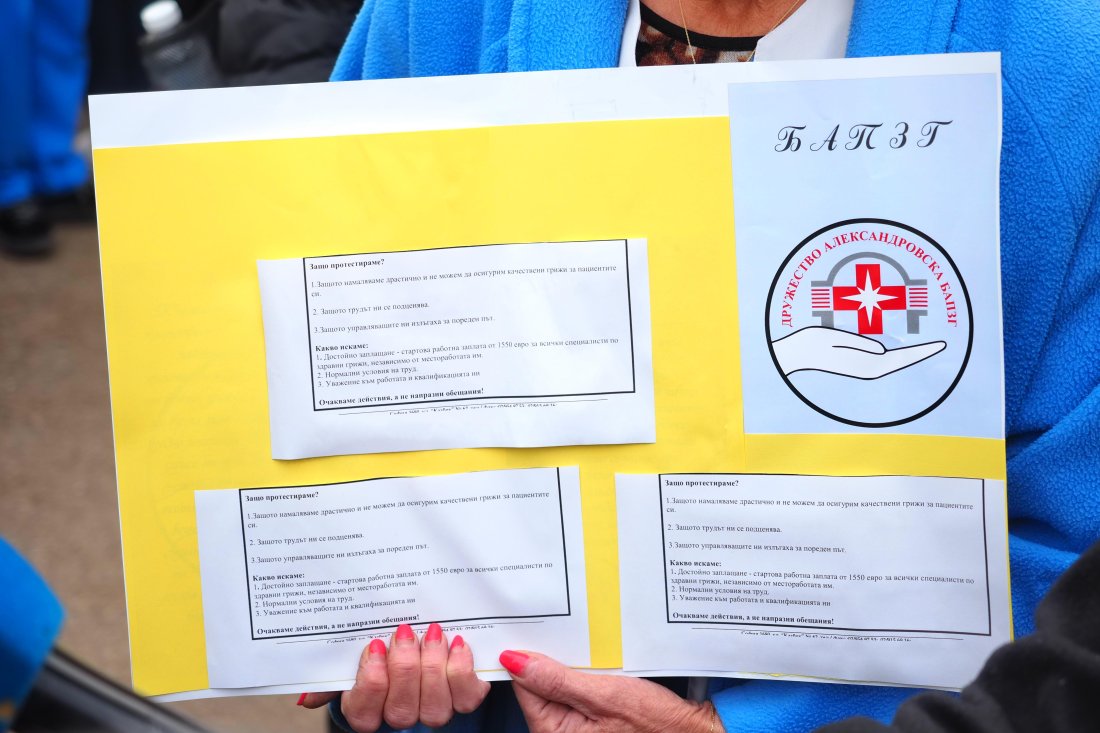 Причината за протеста е, че в новия бюджет за 2026 година не са заложени средства за постигане на минимални стартови заплати на специалистите по здравни грижи от 1550 евро.