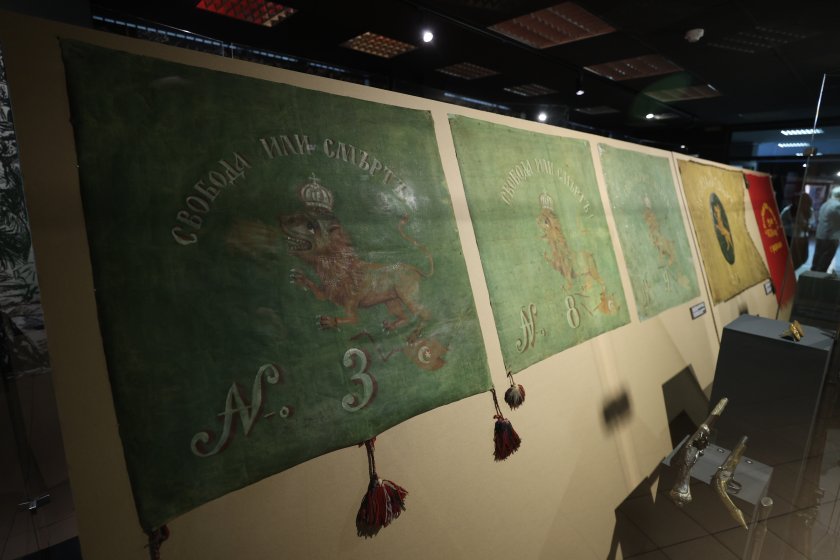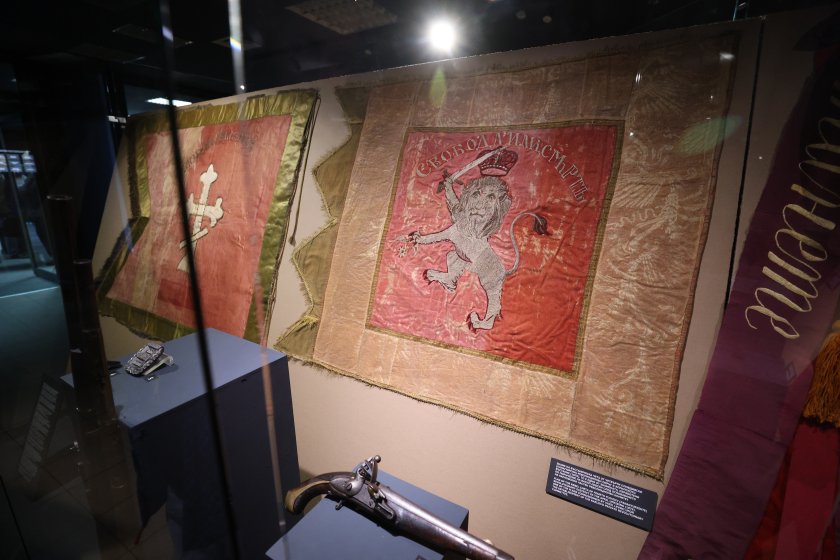 Сред най-значимите експонати е Карловското знаме - поръчано още от Васил Левски, под чиито дипли Панайот Волов обявява въстанието в Панагюрище, тъй като знамето на Райна Попгеоргиева все още не е готово. Представени са и три от дванадесетте знамена, ушити по поръчка на Георги Бенковски за Четвърти революционен окръг, знамето на Горнооряховските въстаници, знамето на четата на Димитър Беровски от Разловското въстание, знамето на Сливенския революционен окръг и на комитета в с. Радилово.