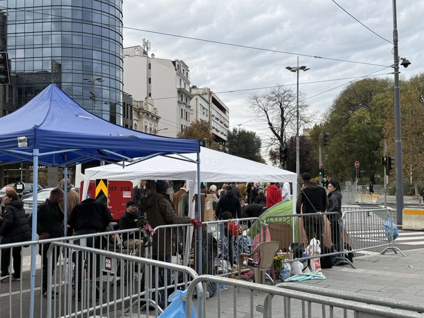 Всичко започна вчера около обяд, когато Дияна Хърка, майка на убития под козирката в Нови Сад преди точно една година Стефан, обяви гладна стачка. Нейното намерение беше да отиде пред парламента и да застане срещу белите палатки на контрапротестиращите привърженици на президента Александър Вучич.