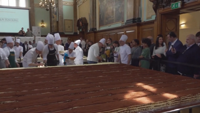 Рекордът беше посветен на крал Чарлз III и кралица Камила в знак на благодарност към страната, в която живее една от най-големите италиански общности в света. Досега рекордът за най-голямо тирамису държеше Милано.