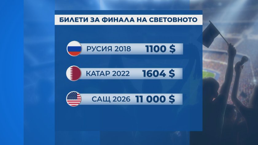 Скок от предходните две Световни, който трудно може да бъде обяснен с инфлацията. В Русия най-скъпият билет за финала струваше 1100 долара, четири години по-късно в Катар 1600 долара, сега увеличението е почти десеторно.