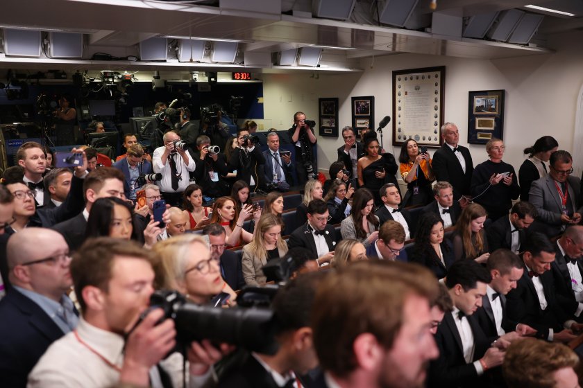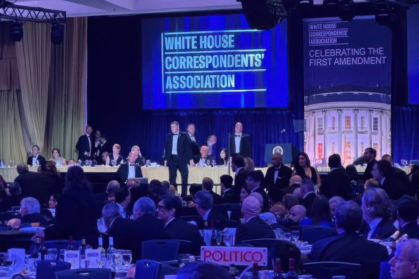 Доналд Тръмп за първи път присъства на вечерята на кореспондентите в Белия дом. Дългогодишната неприязън на американския президент срещу медиите беше в основата на неговия бойкот. Но събитията отредиха да остане едва 15 минути.