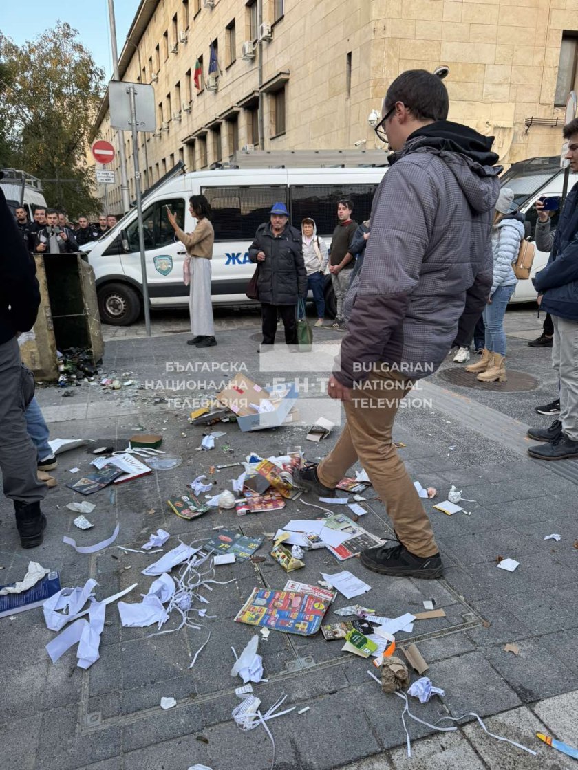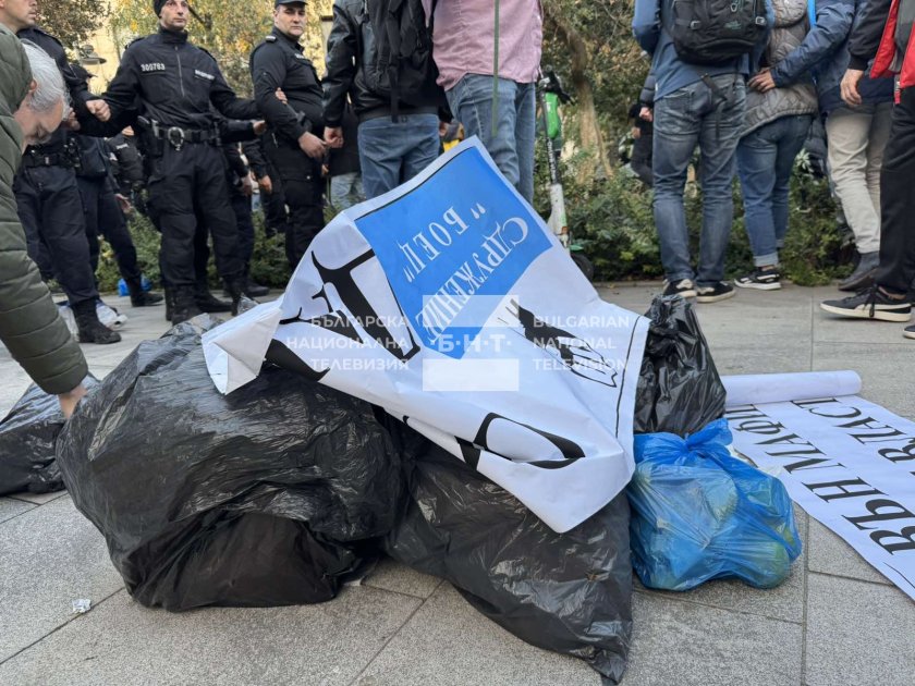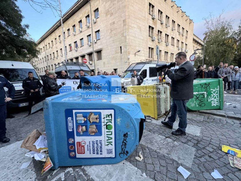 Лидерът на БОЕЦ Георги Георгиев призова протестиращите да изхвърлят пликове с боклук пред сградата. Те обаче не бяха допуснати, тъй като улиците са блокирани от бусове на полицията. Стигна се и до спречкване с униформените.
