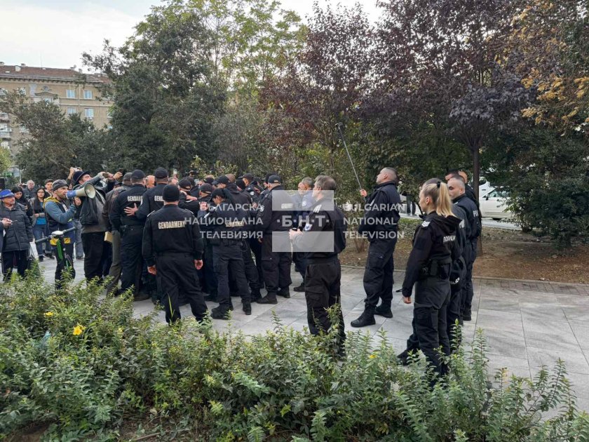 Протестиращите се събраха в градинката до МВР и се опитаха да се преместят пред централния вход, но бяха спрени от полицията.