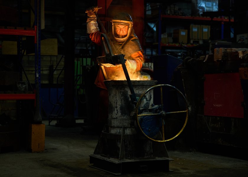 Металът се охлажда за около три или четири часа, след което може да се извади от пясъка. Повърхностите на маските изглеждат матови и малко груби по краищата на този етап, но след почистване, гравиране и полиране те са готови за сглобяване, преди да бъдат проверени изключително внимателно.