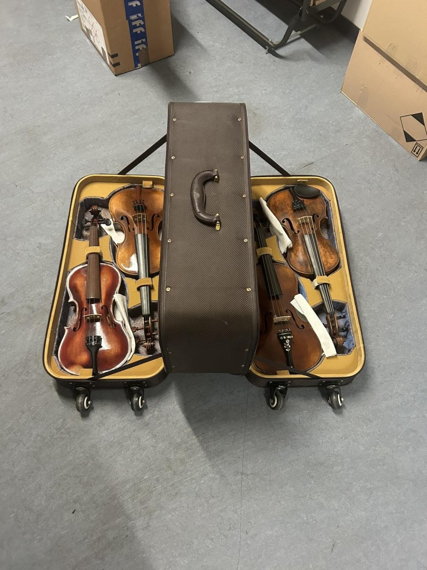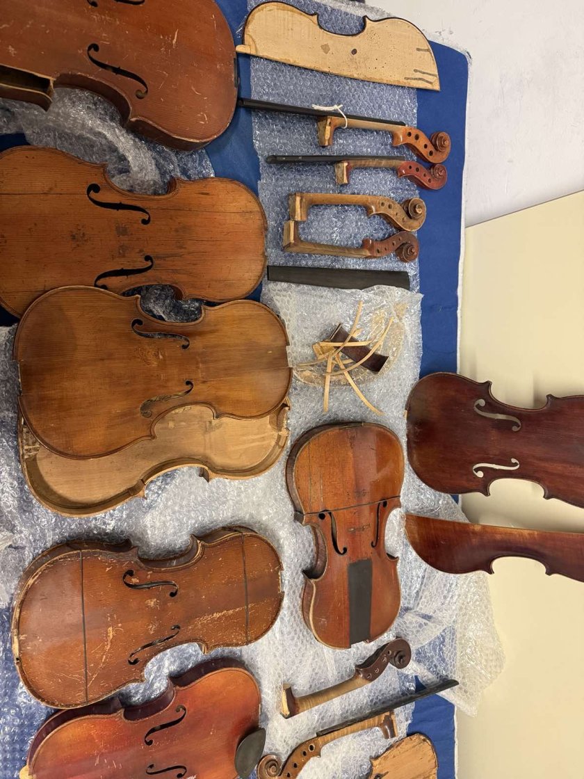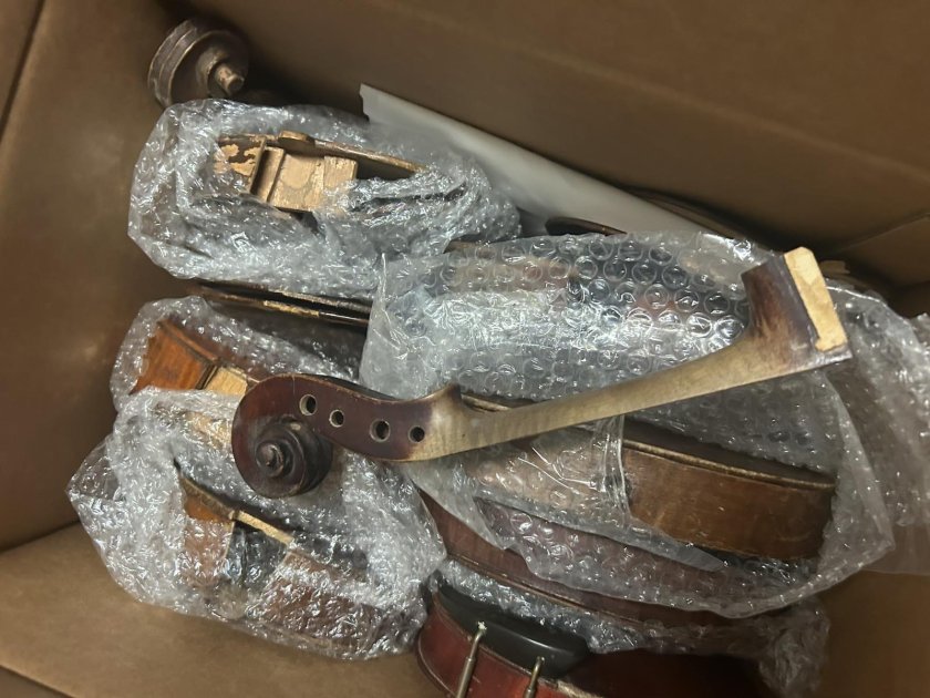 В хода на извършената рентгенова и последвалата физическа проверка в багажа му са открити общо 8 цели цигулки, 13 лъка и 7 цигулки разглобени на части.