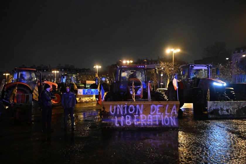 Фермери блокираха центъра на Париж. Десетки трактори бяха разположени около Триумфалната арка като демонстрация на гнева на земеделските производители срещу политиките в сектора.