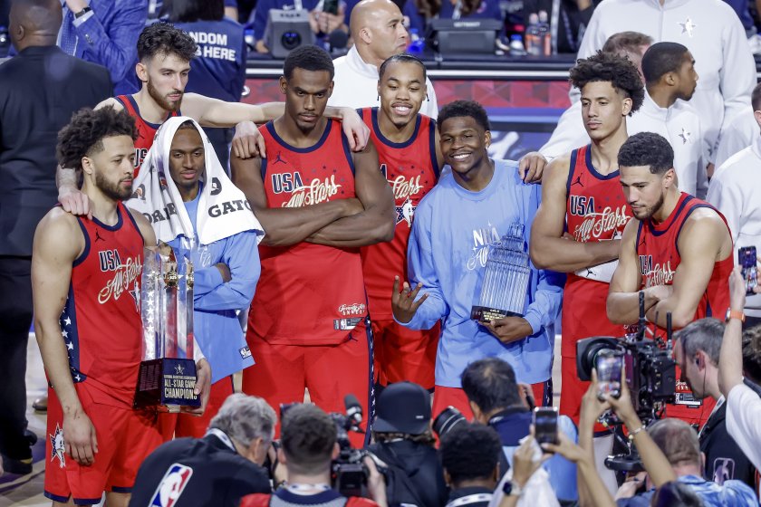 В Intuit Dome в Калифорния се проведе традиционният Мач на звездите от НБА. Баскетболната асоциация тази година заложи на изцяло нов формат и включи три отбора – два с американски и един с международни играчи.