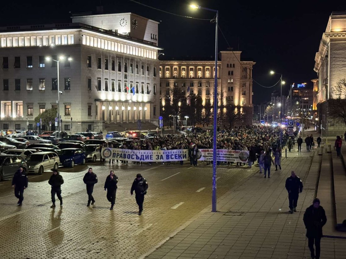 Протестиращите се събраха тази вечер пред сградата на Съдебната палата под надслов "САРАФOFF! Свобода и справедливост!".