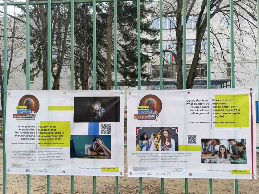 Точно затова на оградата на Националната природо-математическа гимназия е подредена образователна изложба с 15 тематични пана, посветени на дезинформацията и капаните в дигиталната среда. Съдържанието е достъпно чрез QR код, като всеки ученик може да избере тема и да разгледа видео, статия или интерактивна игра.