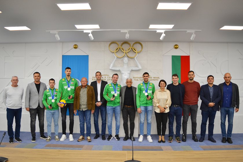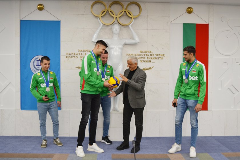 Академичното ръководство и студенти приветстваха на крака Алекс Грозданов – капитан на отбора, Андрей Жеков – помощник-треньор, Венислав Антов - диагонал и Дамян Колев – либеро, а ректорът проф. Красимир Петков връчи на всеки от тях значка на Националната спортна академия.