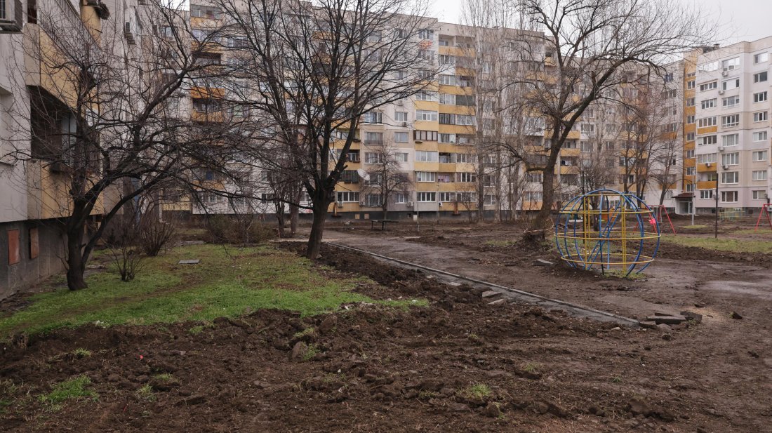 Възстановяването на междублоковите пространства е трябвало да приключи до месец след полагане на тръбите. Това обаче все още продължава.