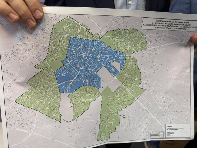 Синя зона от 5 януари 2026 стават: площад Македония + Руски паметник, Крива река, Иван Вазов, долната част на Лозенец между Канала и Свети Наум, долната част на Яворов, Оборище между Ситняково и Канала.