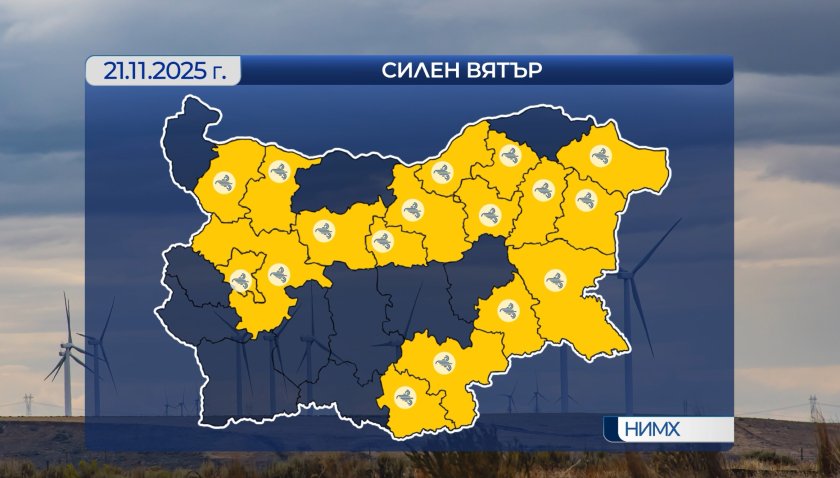 Опасно ветровито ще остане и утре в Източна България и на север от планините, с временно силен южен вятър. В широки граници ще останат и температурите, особено максималните – в интервала от 10° до 22°, в София - около 18°. Ще има променлива облачност, по-значителна над Западна България и планините, където ще има и валежи, по-значителни в югозападните райони от страната.