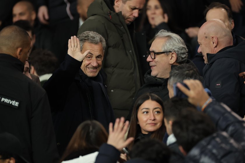 Бившият френски президент Никола Саркози (вляво) изгледа мача на "Парк де Пренс".