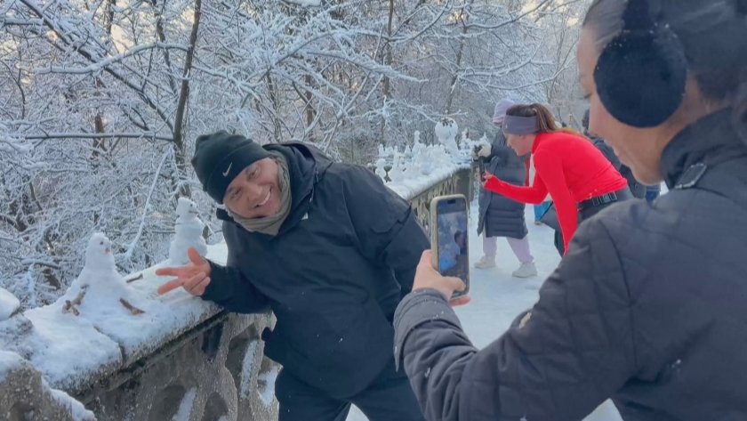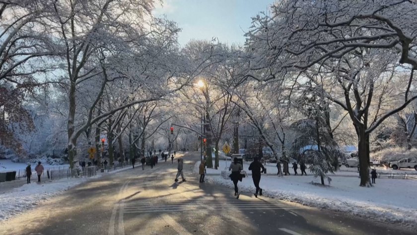 Първият сняг вече зарадва жителите на Ню Йорк.