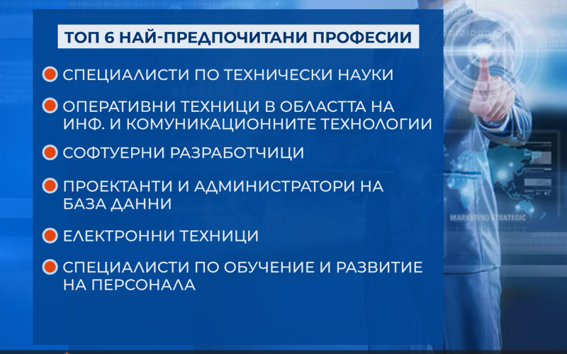Какви са тенденциите на пазара на труда и кои са най-желаните професии у нас? Последното проучване на Асоциацията на индустриалния капитал у нас показва, че най-предпочитан остава IT секторът заради високите доходи и гъвкавите условия на труд. В същото време, макар търсенето на кадри да е голямо, най-малко желана у нас е професията на пилота.