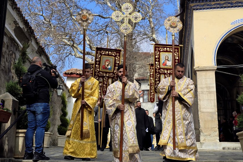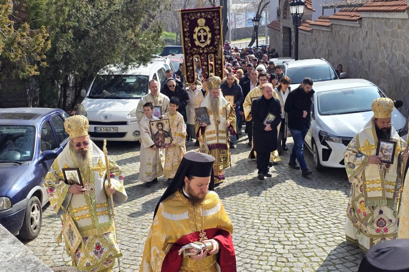 Духовният празник на Неделя Православна продължи с литийно шествие, което с иконата на Св. Богородица Победоносна, високо вдигнати хоругви, всички икони и светини начело, следвани от митрополита на Пловдивската епархия, викарните епископи, свещенослужителите и миряните, обиколи митрополитския храм "Св. вмчца Марина".