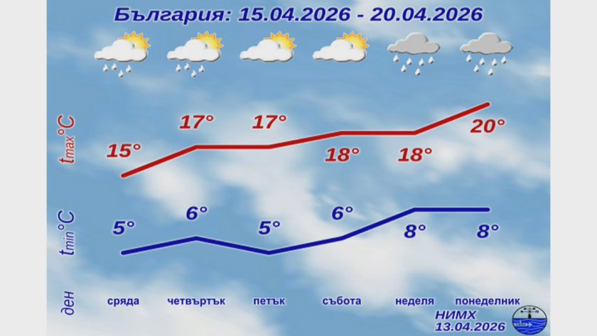 След по-хладното начало на април и променливото време около Великден, прогнозите сочат постепенно затопляне, но без значителни валежи в по-голямата част от страната. Това обясни в студиото на "Денят започва" синоптикът Анастасия Стойчева от Националния институт по метеорология и хидрология (НИМХ).