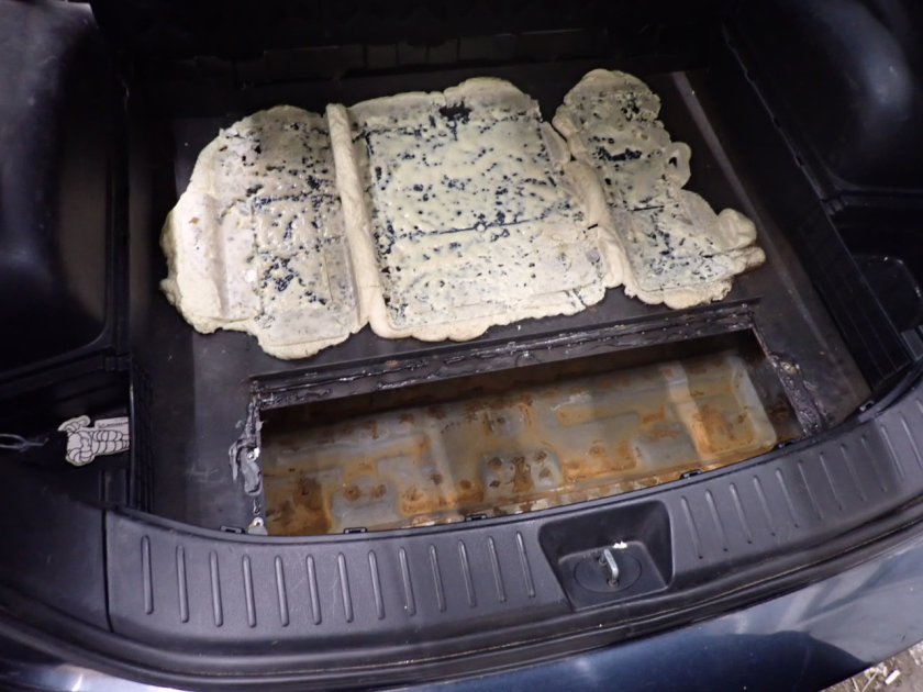 Извършена е съвместна проверка на превозното средство от екип гранични полицаи със служебно куче Пирин и митнически служители, при която в багажника под кората е установен тайник, в който има пакети, увити в кафяво тиксо, съобщиха от „Гранична полиция“. Под предните седалки и броните на автомобила също са установени изградени тайници с пакети. Общото им количество е 107 пакета, съдържащи суха зелена тревиста маса. При извършеният полеви наркотест, веществото в пакетите е реагирало на марихуана.