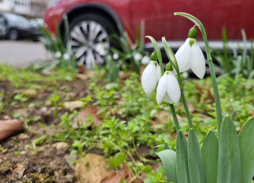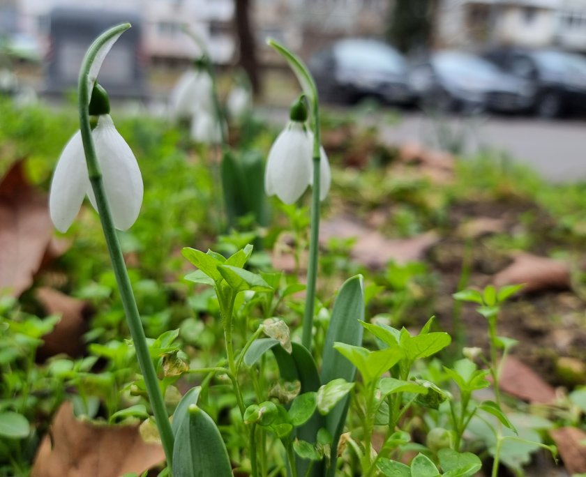 В междублоковите пространства във Варна цъфнаха кокичета.
