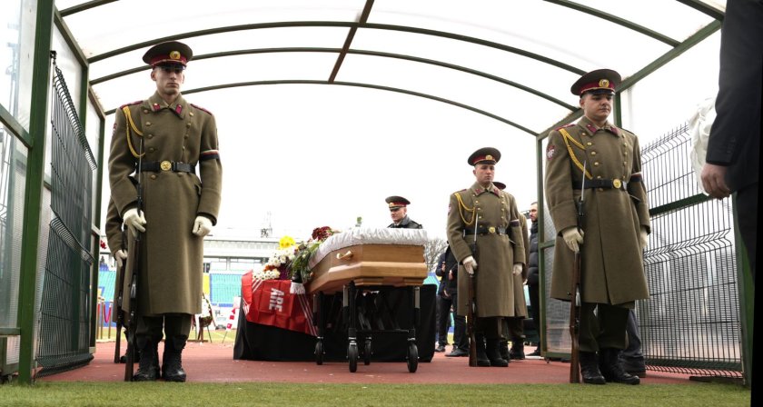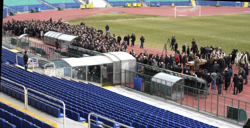 Сними от поклонението пред Димитър Пенев, което се състоя на Националния стадион "Васил Левски". Хиляди си взеха последно сбогом с легендата на българския футбол.