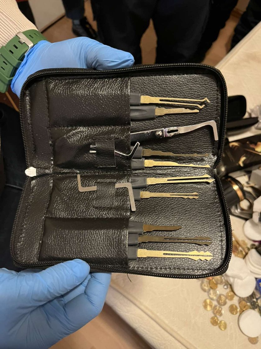 При претърсването от дома им са иззети количества от три от най-силните наркотични вещества, две електронни везни, пари и вещи, откраднати от частни домове в центъра на града. Открити са и приспособления за отключване и взлом на секретни патронници за домове и леки автомобили и фалшиви полицейски униформи.