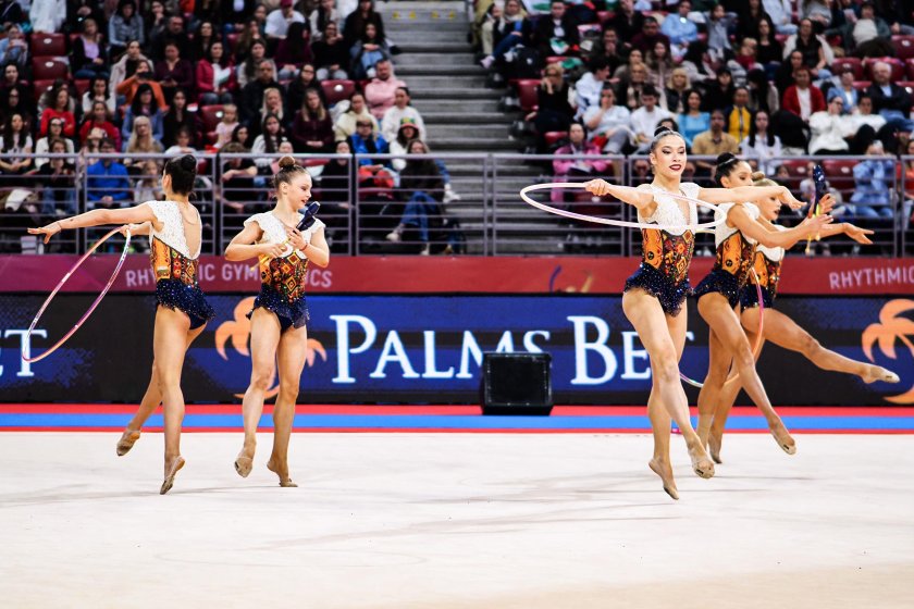 Ансамбълът ни по художествена гимнастика завърши последен във финала на 3 обръча и 2 чифта бухалки на Световната купа в София.