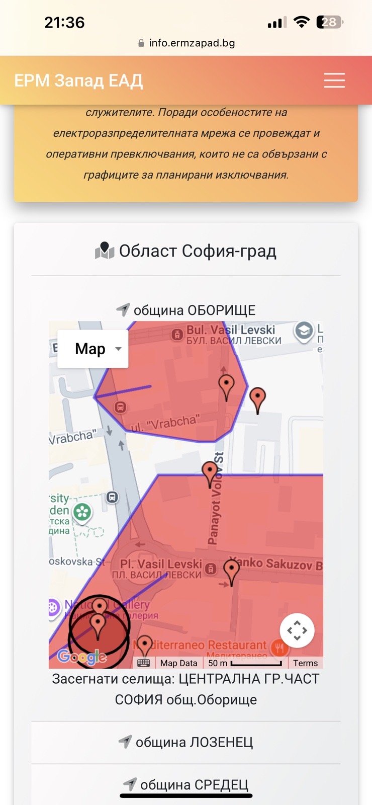 Подадени са сигнали до пожарната и полицията, като се очаква отдимяването на съоръжението, за да се установят причините и незабавно да започне възстановяване на електрозахранването по алтернативни схеми.