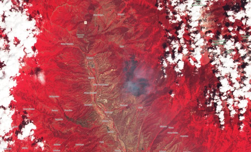 Пожарите в страната са видими и от космоса. Чрез европейската система "Коперник" и спътника Сантинел-2 може да се види и разликата в опожарената площ между 26 и 28 юли в района на Илинденци.