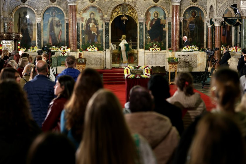 Дълга опашка от вярващи, дошли да се помолят и смирят се изви пред храма. Сред тях беше и именницата Цветана.