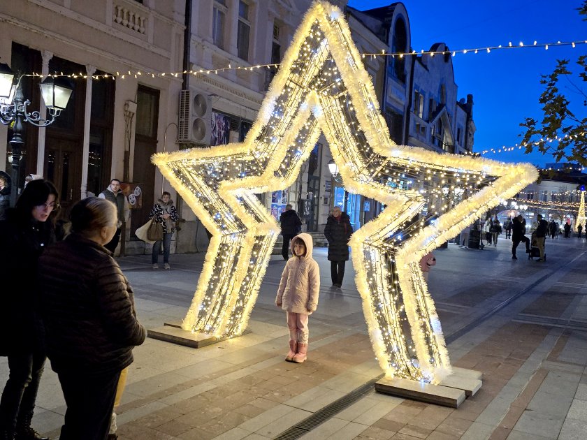Хиляди разноцветни лампички осветяват централните улици във Видин.