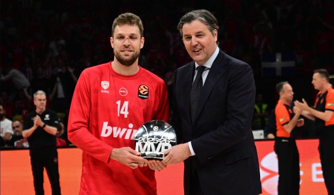 Лидерът на Олимпиакос получи наградата си за MVP на редовния сезон в турнира на богатите.