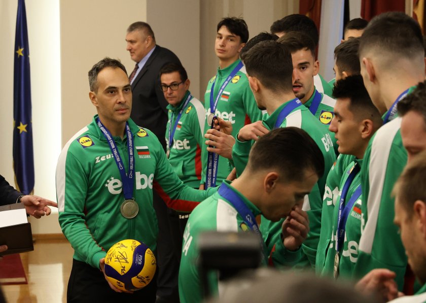 Президентът Румен Радев удостои с почетни плакети националите ни по волейбол, треньорския щаб и Българската федерация по волейбол. Това стана на церемония в Гербовата зала на "Дондуков" 2.