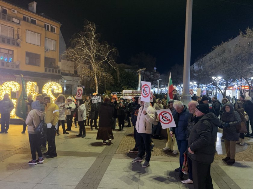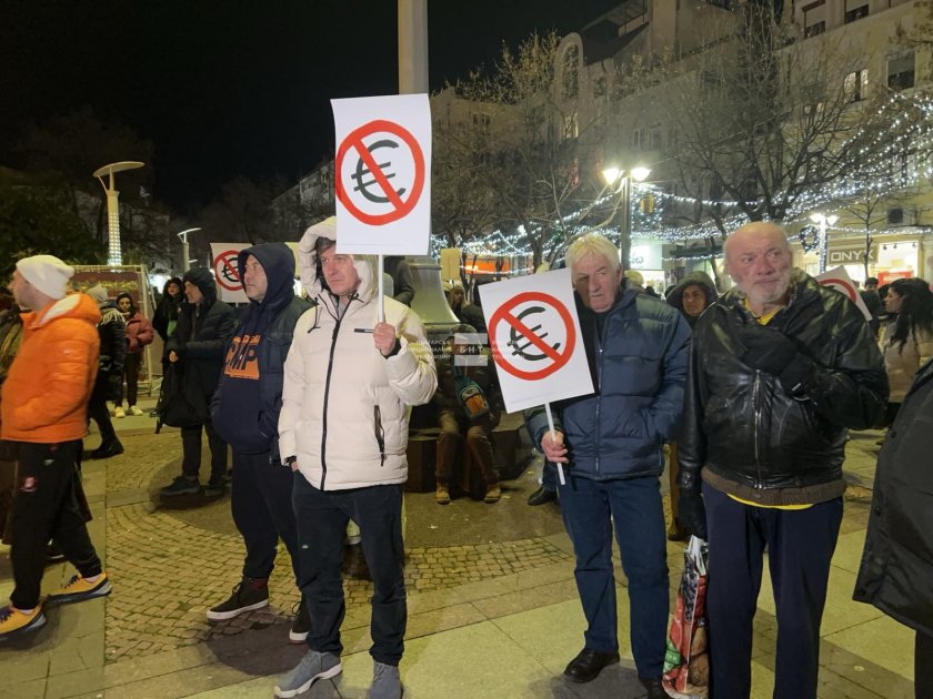 Граждани се събраха на протест тази вечер пред сградата на общината в Бургас. Недоволните се обявиха срещу предстоящото въвеждане на еврото у нас, като заявиха, че не приемат промяната и настояват българският лев да остане единственото разплащателно средство.