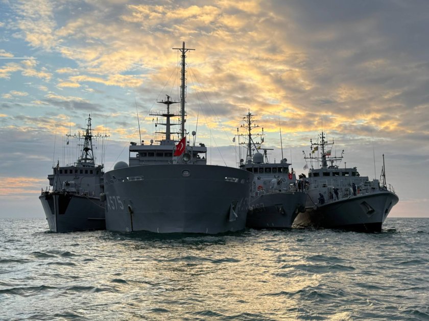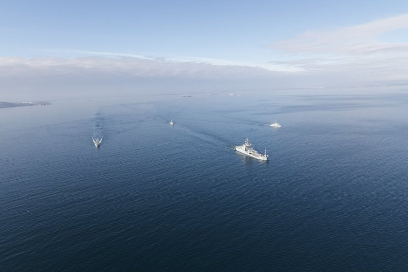 Корабите от Военноморската противоминна група в Черно море напуснаха пристанище Бургас, вече са на море и корабните екипажи отработват разузнаване и наблюдение с оглед заплахата от морски мини, противоминни действия в определени зони, приемане и предаване на леки товари и поща на ход и буксировка на аварирал кораб.