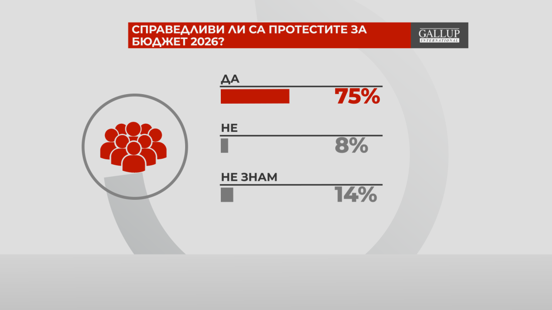 75% от българите смятат, че протестите за Бюджет 2026 са справедливи. Това показва проучване на "Галъп Интернешънъл Болкан" за предаването "Референдум".