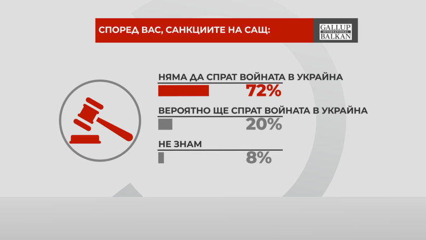 72% от анкетираните не смятат и че санкциите са способни да спрат войната в Украйна. 20% са на обратното мнение.