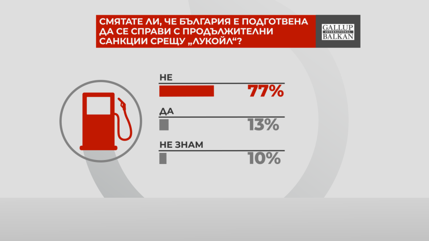 Мнозинството от участниците в допитването - 77% не смятат, че България е подготвена да се справи, ако санкциите срещу руския петролен гигант продължат по-дълго.