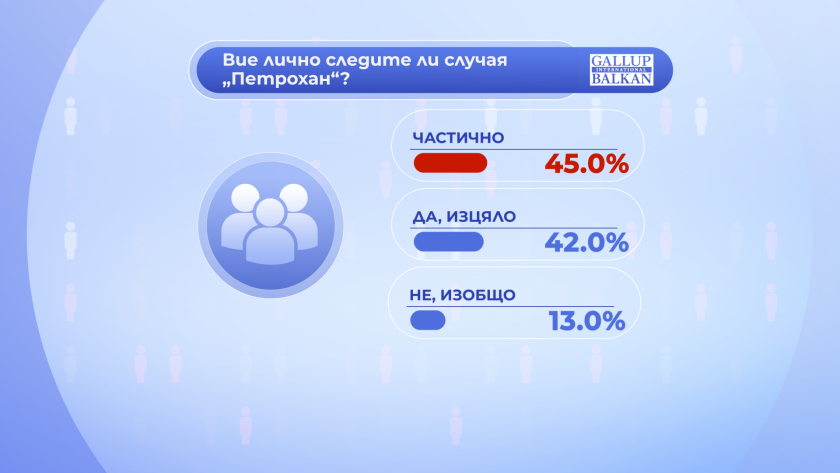 87% от хората казват, че следят новините около случая "Петрохан". Това показват данните от изследване на "Галъп Интернешънъл болкан", направено за "Референдум".