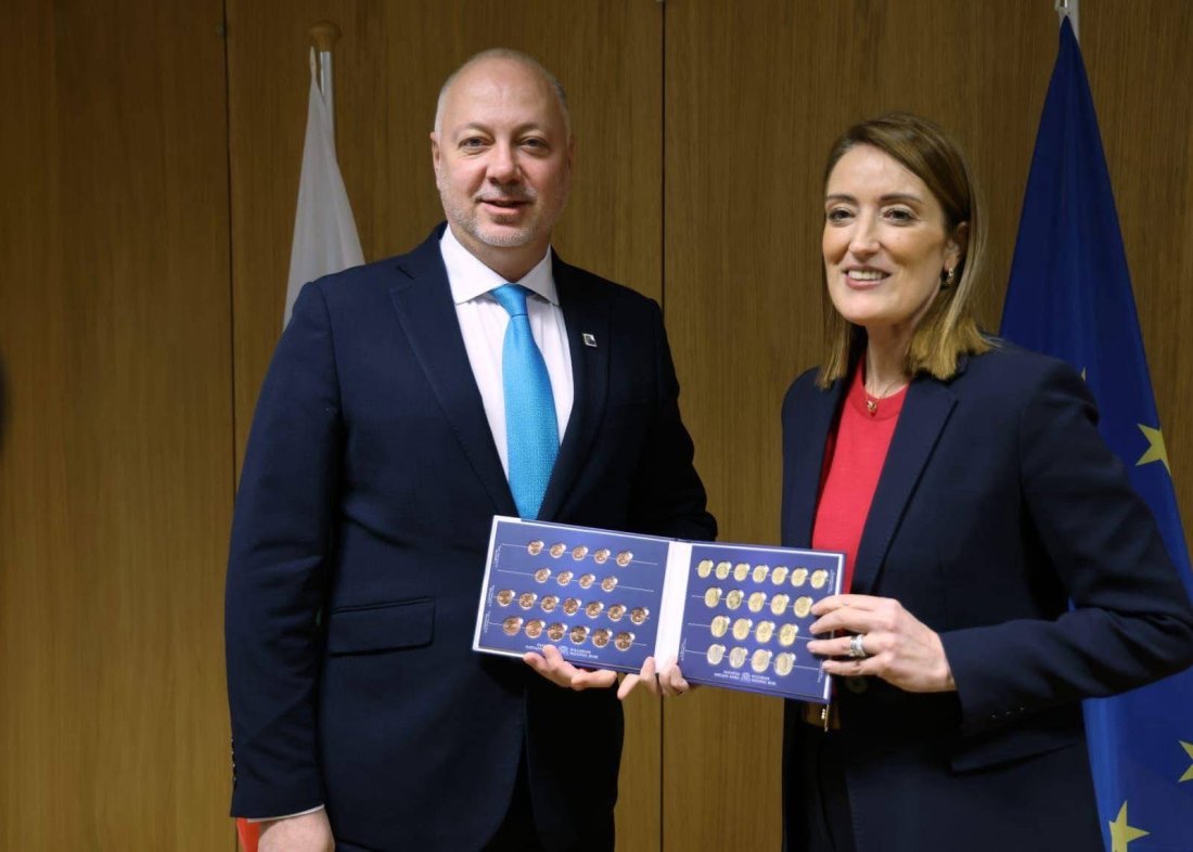 Премиерът в оставка Росен Желязков подари днес на лидерите на европейските институции Урсула фон дер Лайен, Антонио Коща и Роберта Мецола и на лидерите на страните от ЕС комплекти с новите български евромонети. Премиерът в оставка е в Брюксел за среща на върха, на която трябва да бъде взето решение за предоставянето на репарационен заем за Украйна от замразените в Европа руски активи.