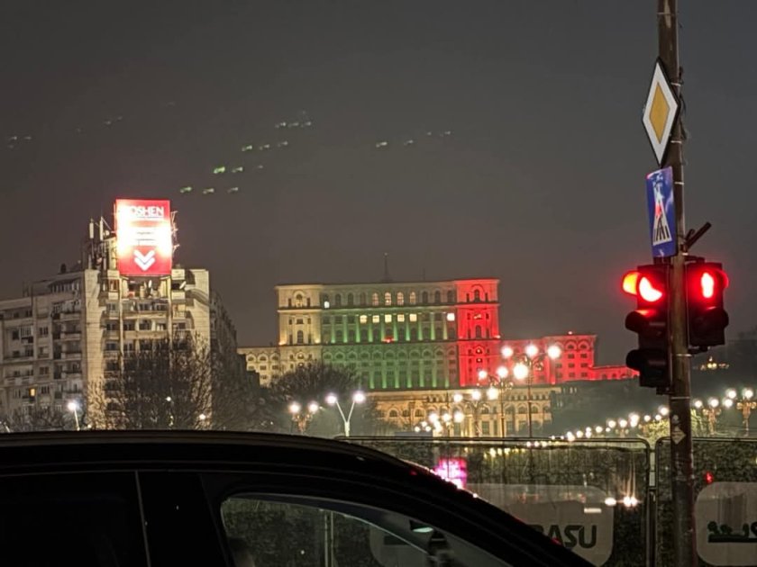 По повод Националния празник на България – 3 март, сградата на румънския парламент в Букурещ беше осветена в цветовете на българския трибагреник.