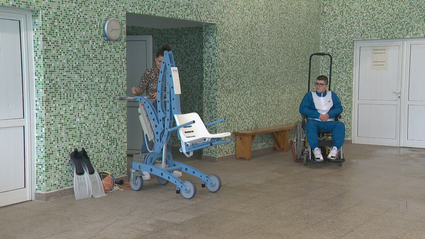 Устройството, с което влиза в плувния басейн, също е купено със средства, събрани от дарения в училището.