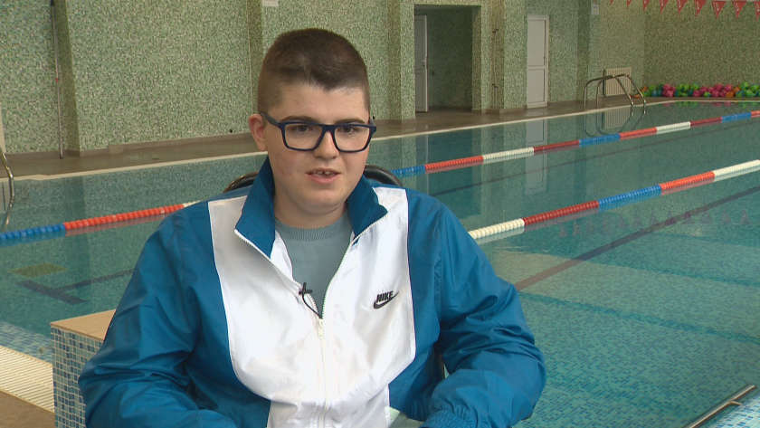 Спортист в инвалидна количка учи в училище без асансьори и рампи. Специална система му помага да се движи по стълбите. А друга машина му помага да влиза в училищния басейн за тренировки по плуване. И двете устройства са купени със средства, събрани от деца и учители в 78-мо училище в Банкя.
