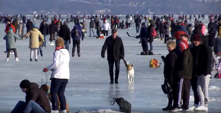 Студената вълна донесе приятни изненади - езерото Балатон в Унгария замръзна достатъчно за безопасно каране на кънки на лед в почивния ден.