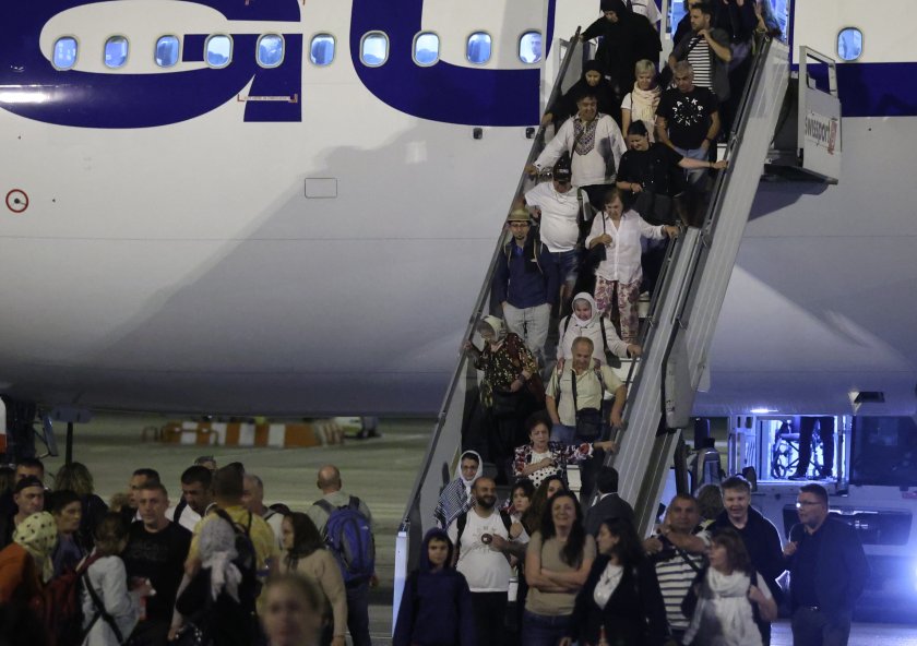 След близо 20 часа път всички българи, които са пожелали евакуация от Израел вече са на българска земя. Полетът със 148 пътници на борда излетя от Шарм ел Шейх за София малко преди полунощ. Сред тях има граждани на още 6 страни. Операцията по извеждането на хората започна вчера рано сутринта, когато желаещите да напуснат Близкия изток бяха извозени с 3 автобуса до границата с Египет, а оттам до курорта Шарм ел Шейх. Външният министър Георг Георгиев заяви, че процесът на евакуация е бил много сложен заради липсата на сигурност.