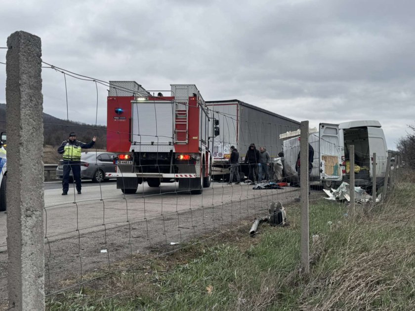 Шофьор на бус загина при катастрофа с тир на АМ "Тракия". Катастрофата между микробус и тир е станала около 14.00 ч. на автомагистрала "Тракия" в посока Бургас при 47-и км - в близост за отбивката за село Мухово, община Ихтиман.