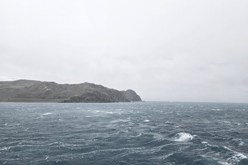 Научноизследователският кораб “Св. св. Кирил и Методий” (НИК 421) се укри от вълните и вятъра в залива пред испанската антарктическа база “Хуан Карлос I” и към момента е невъзможно пускането на лодки до брега. Учени и логистици от експедицията трябваше да слязат днес от борда на кораба на сушата, но транспортирането им е отложено до наличието на подходящо време.